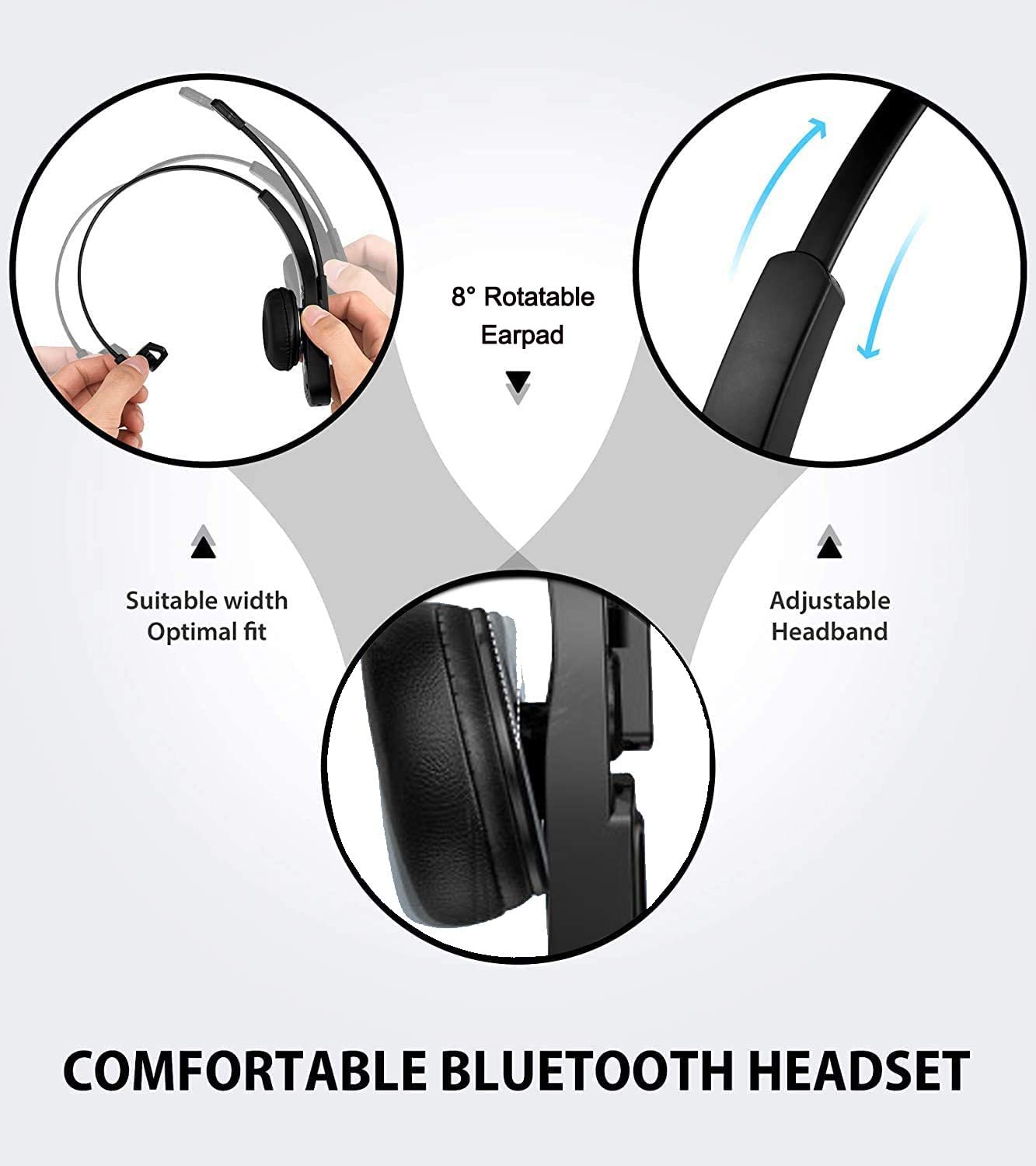 La conectividad Bluetooth 5.0 hace que el emparejamiento sea rápido. El emparejamiento sin fallas le brinda un alcance de 30 pies. Es por eso que. si está en una parada de descanso, puede usar este auricular incluso si su teléfono inteligente está en el camión.