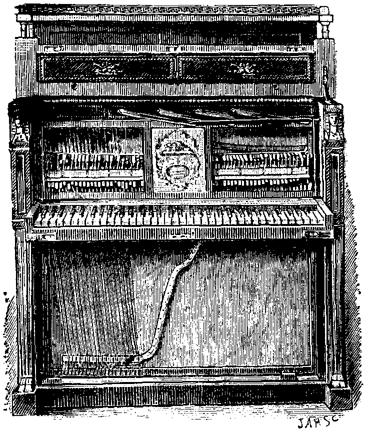 A finales del siglo XVIII en Inglaterra y Estados Unidos comenzó la producción de un piano con estructura de metal que podía soportar la tensión de las cuerdas durante mucho tiempo sin cambiar la afinación.